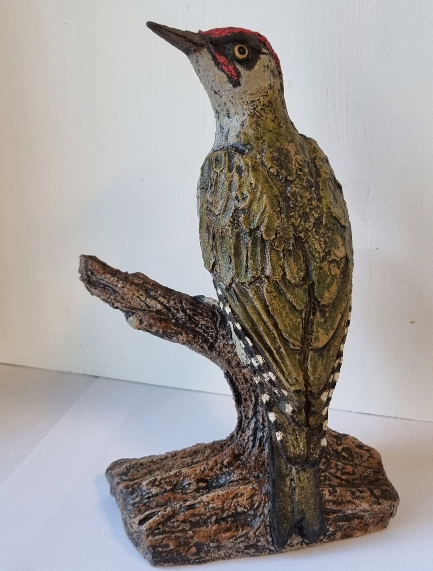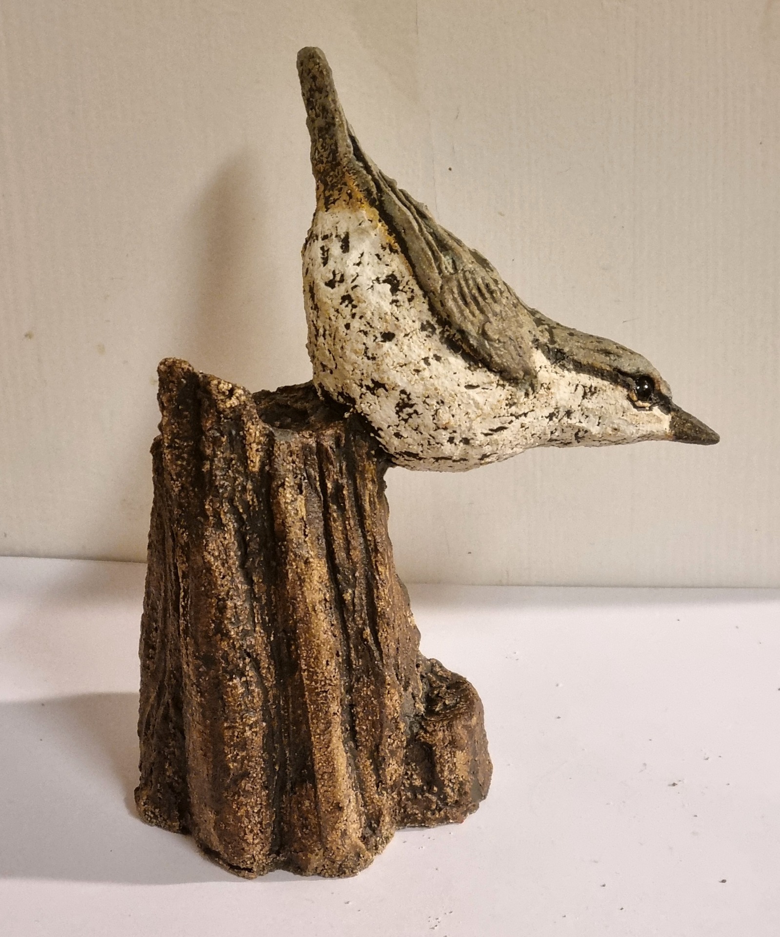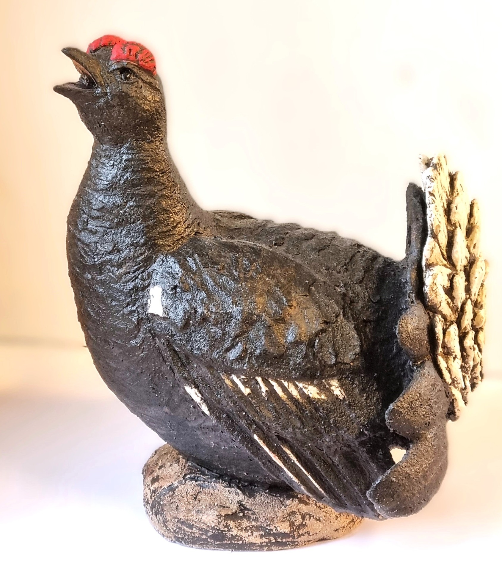 Unike håndlagede fugler i grov keramikk. Sokkel i tre eller keramikk. Kan henge /stå inne eller utendørs. Selges ikke engros.