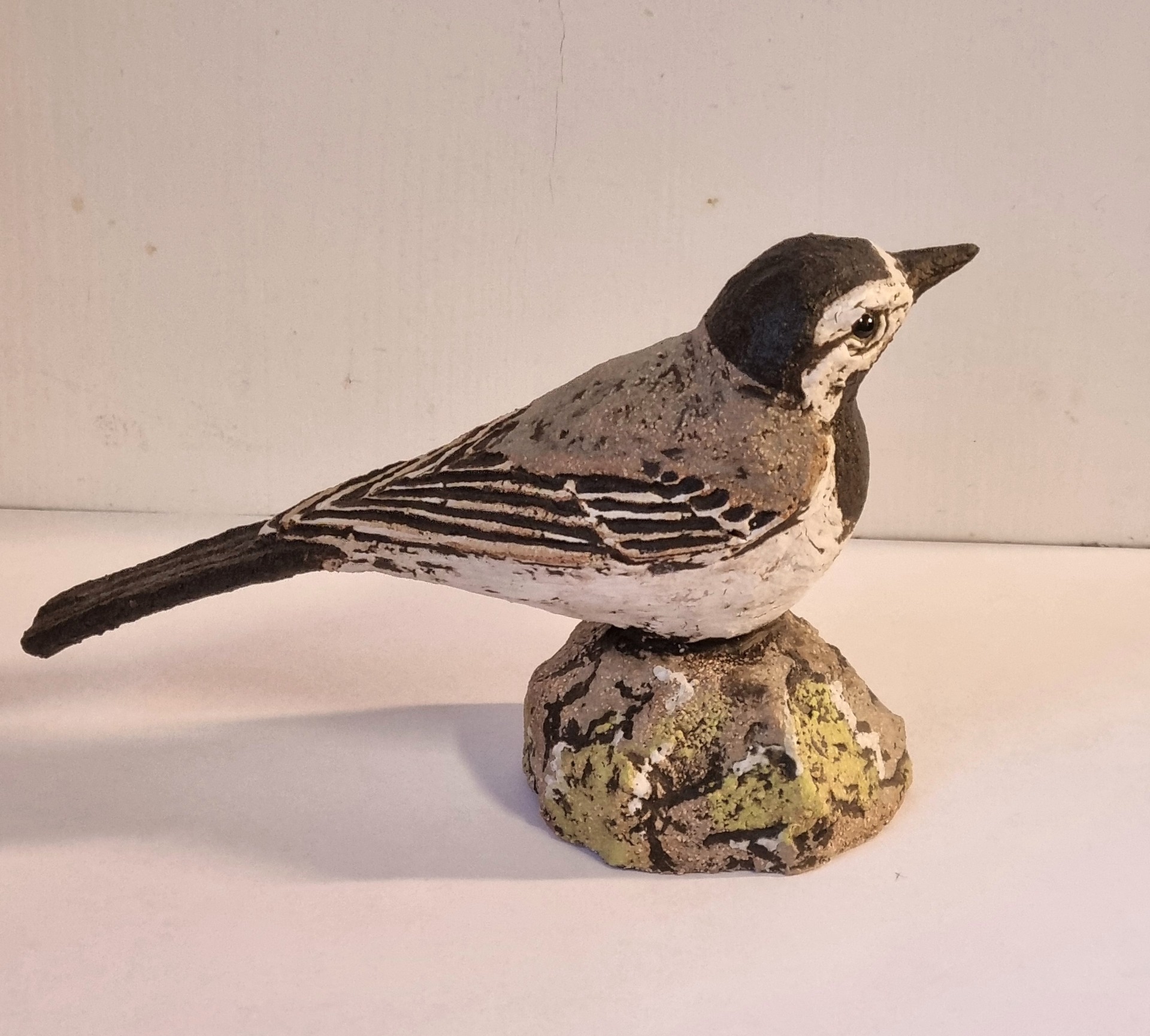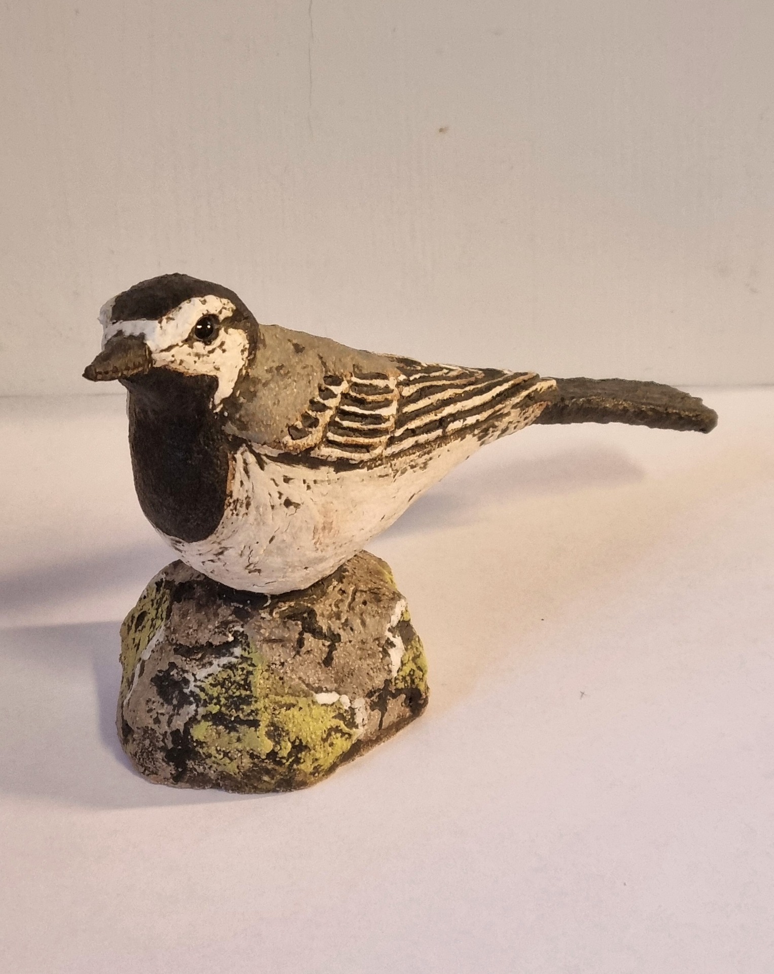Linerle håndlaget i grov keramikk. Høyde 10 cm, lengde 14 cm, bredde 4 cm.