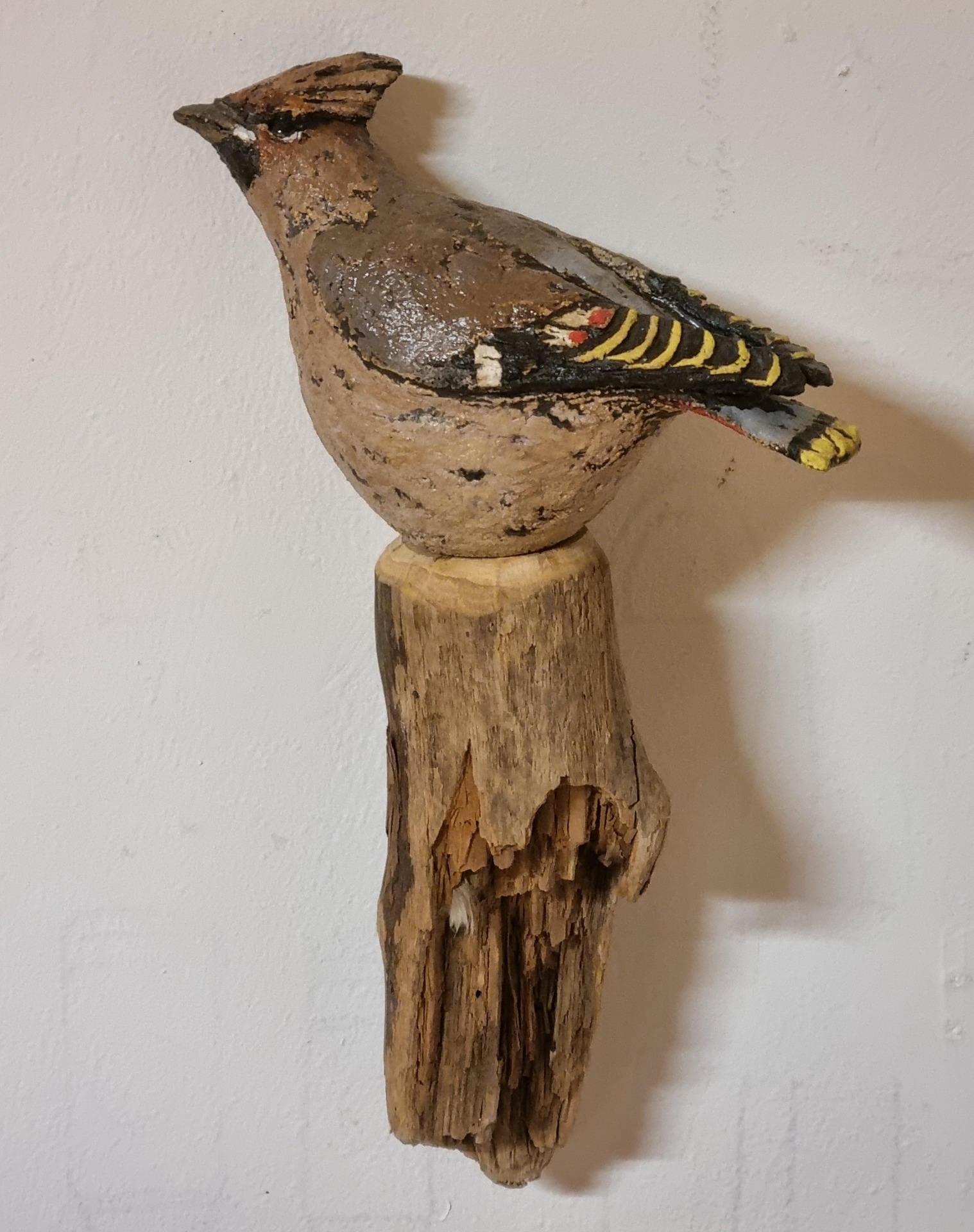 Håndlaget sidensvans i grov keramikk. Høyde 10 cm, Lengde 15 cm, bredde 6 cm.