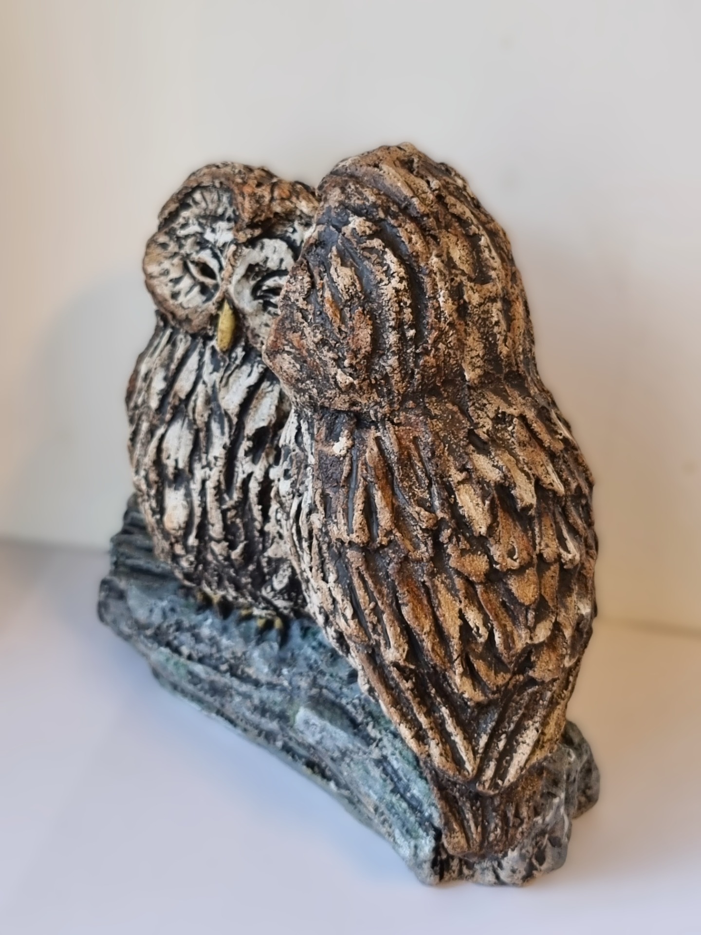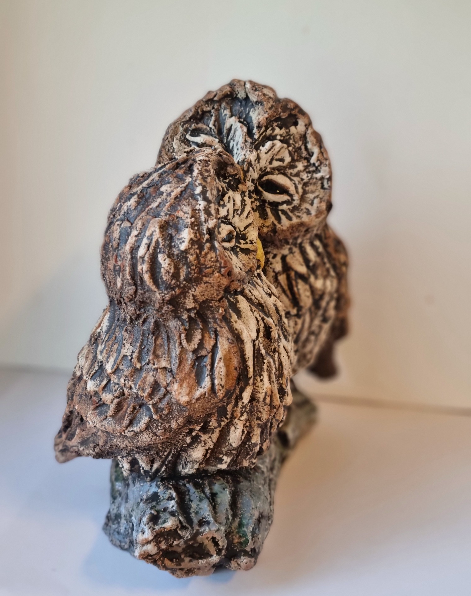 Ugleunger håndlaget i keramikk. Høyde 18 cm, lengde 20cm, bredde 10cm