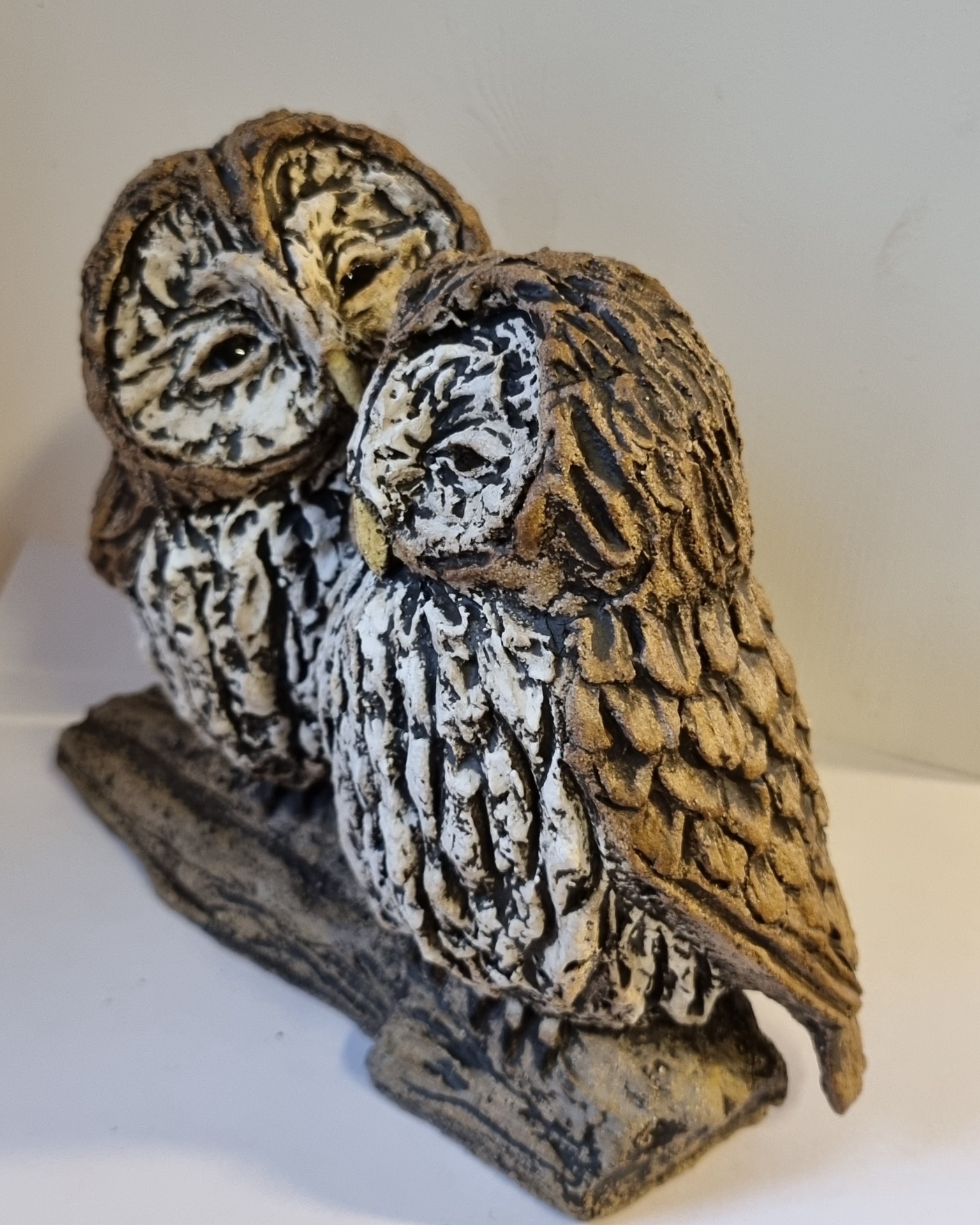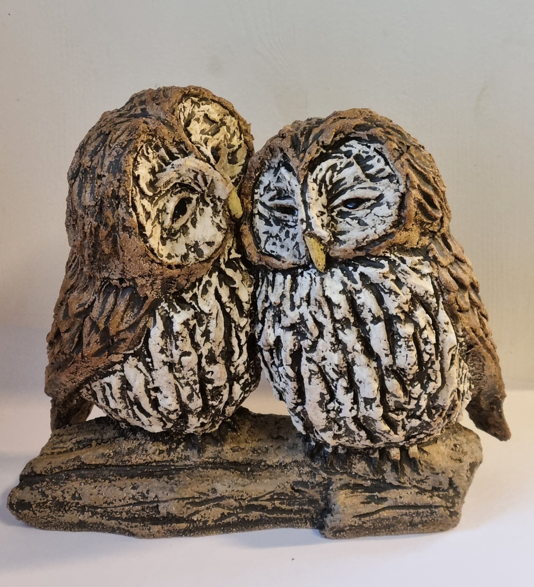Ugleunger håndlaget i keramikk. Høyde 17 cm, lengde 18cm, bredde 8cm