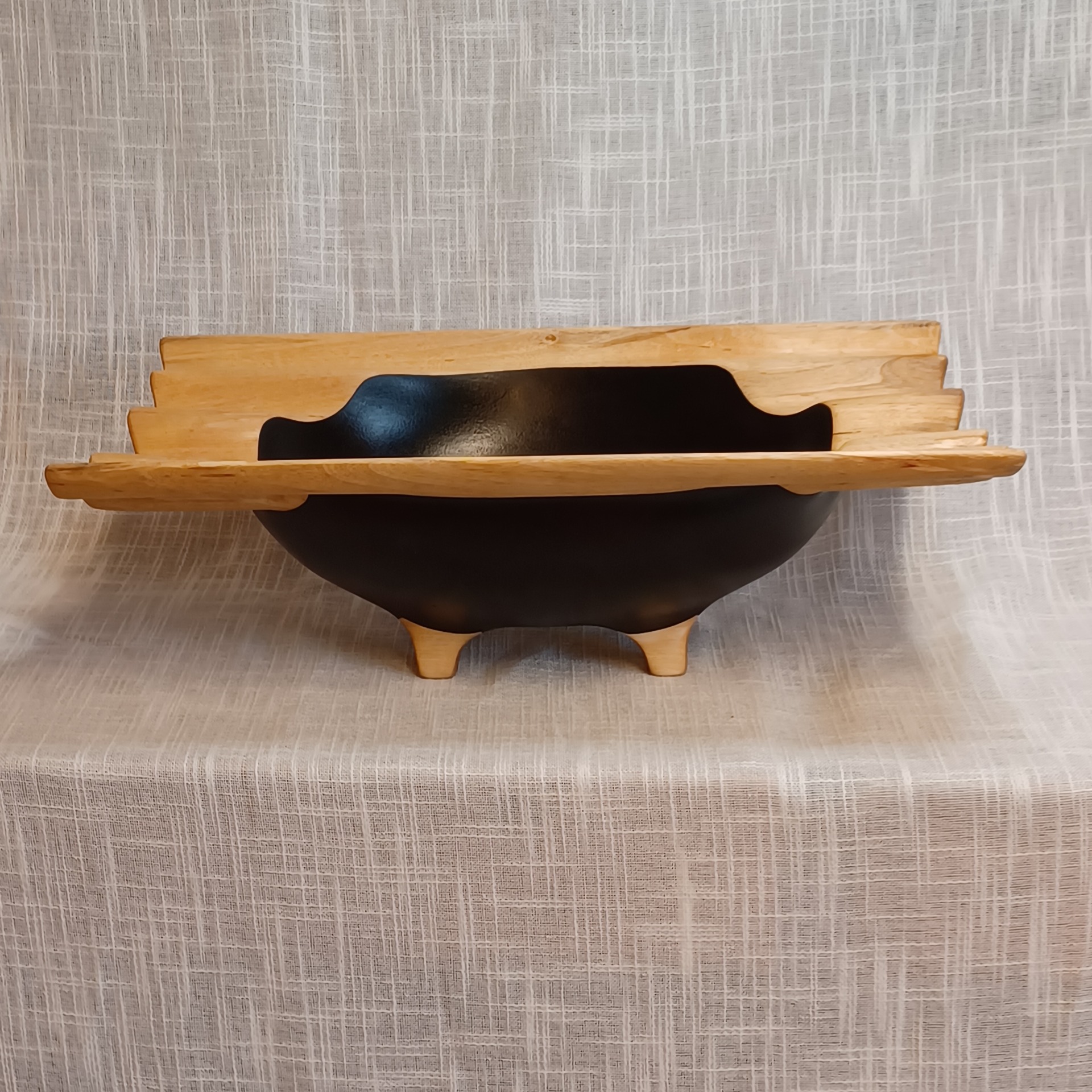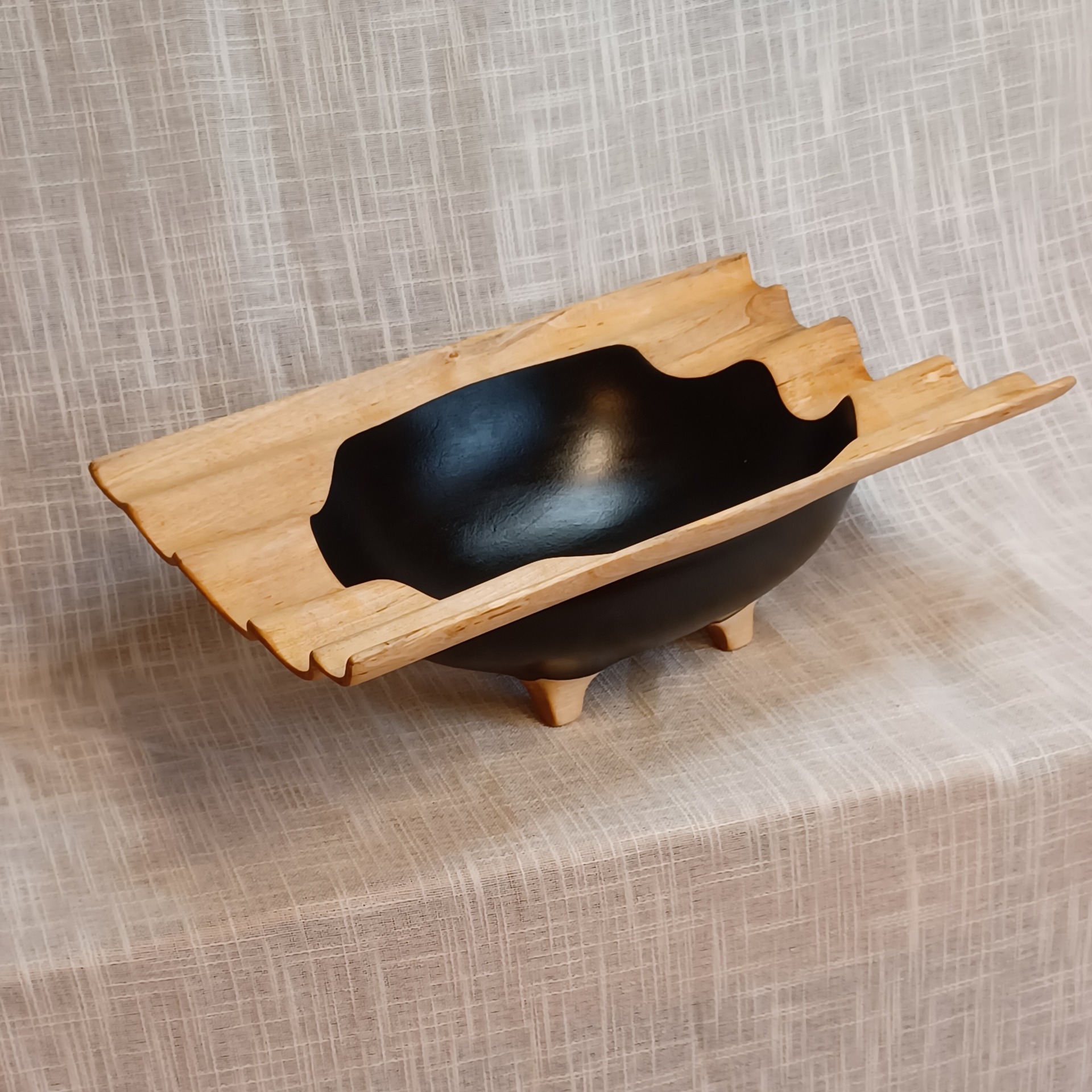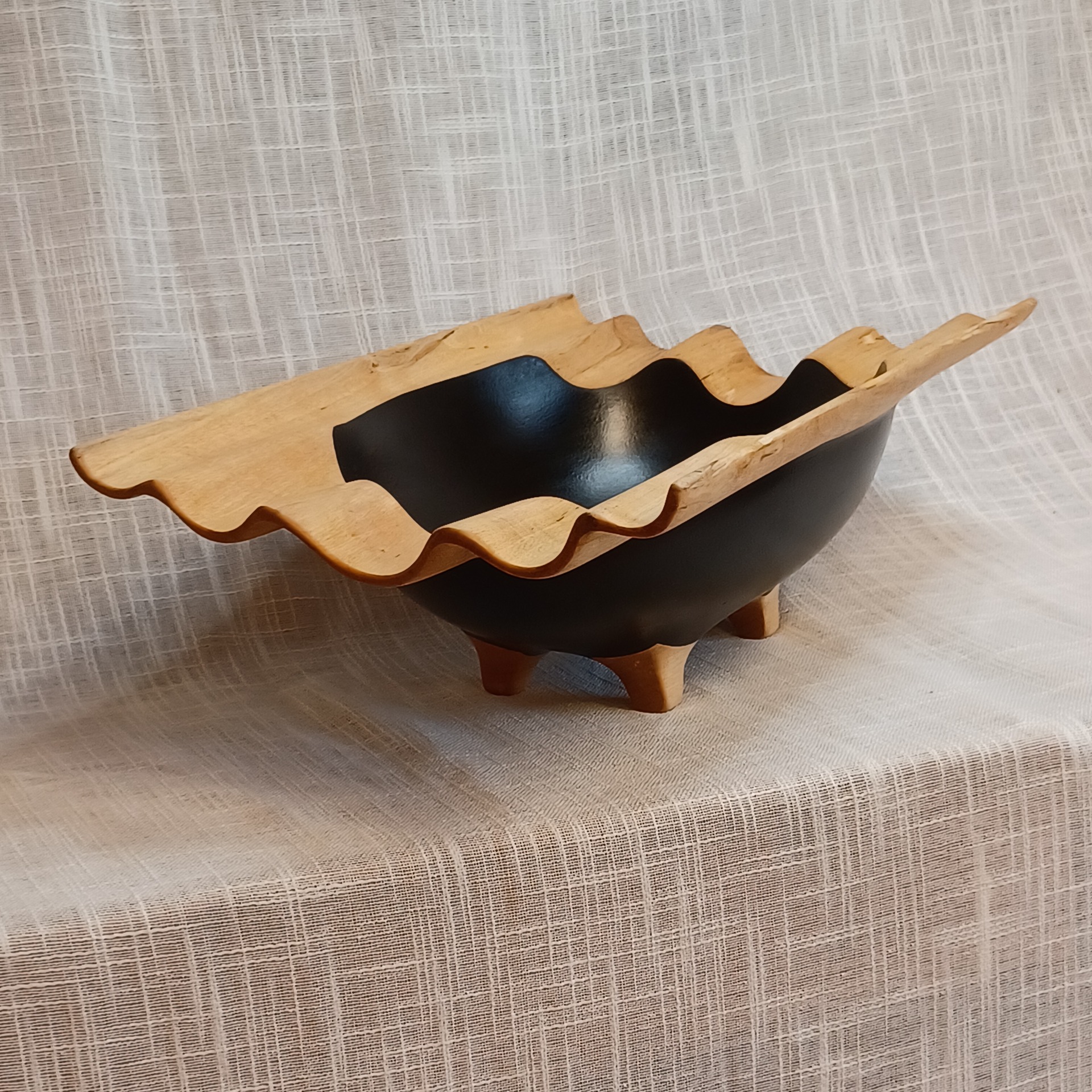 Fatet er laget av bjørk og egner seg godt til frukt og annet snacks. De er bearbeidet for hånd. Uthult, pusset og oljet. Lengde 43 cm, høyde 14 cm og bredde 26 cm.