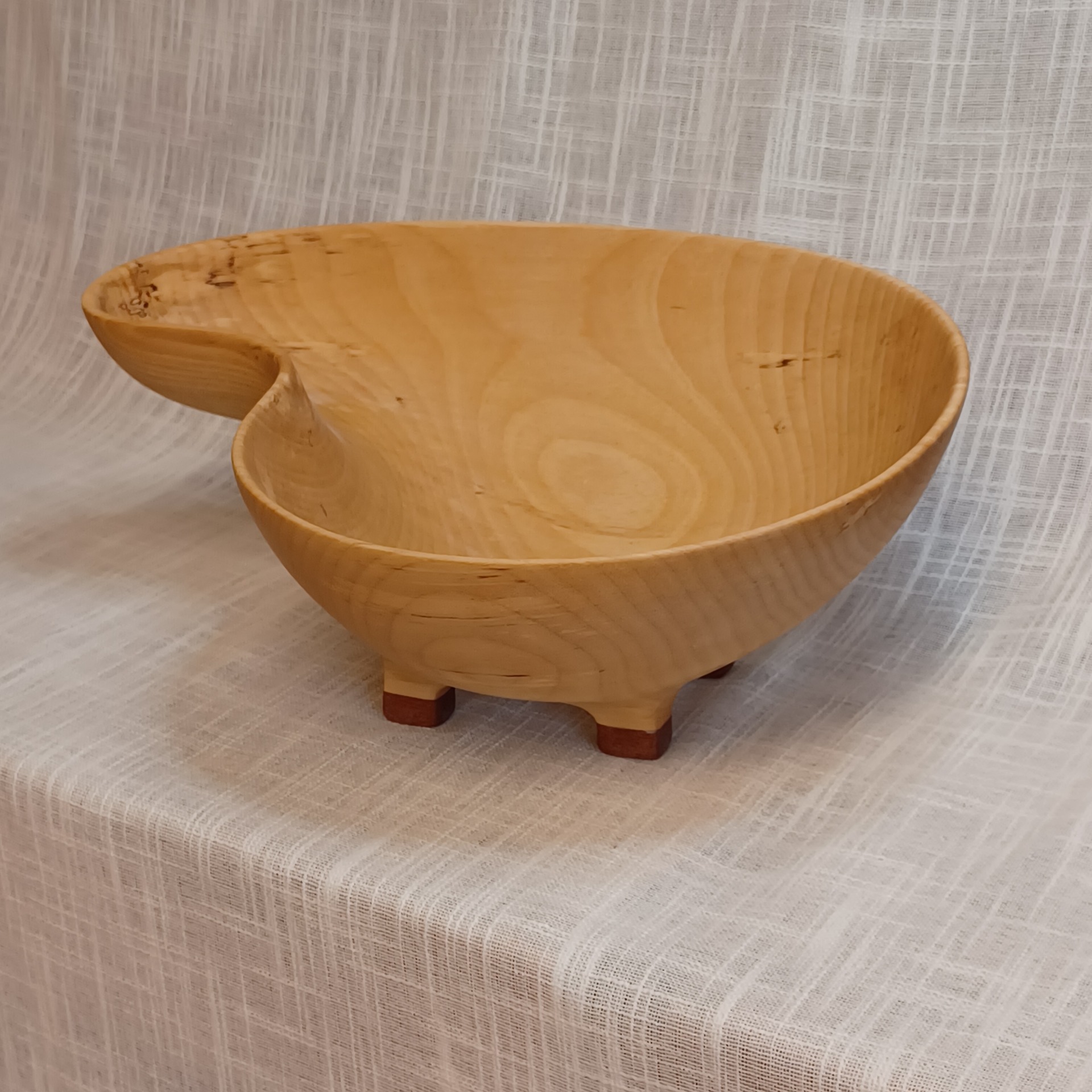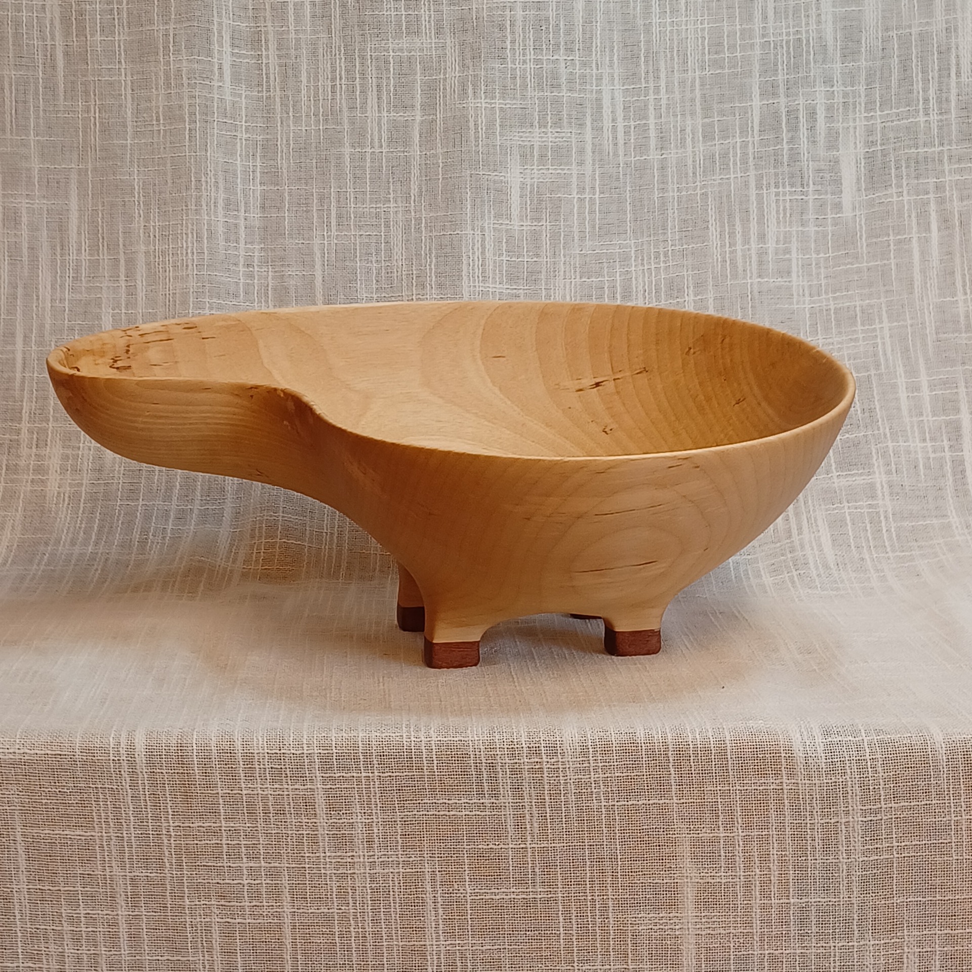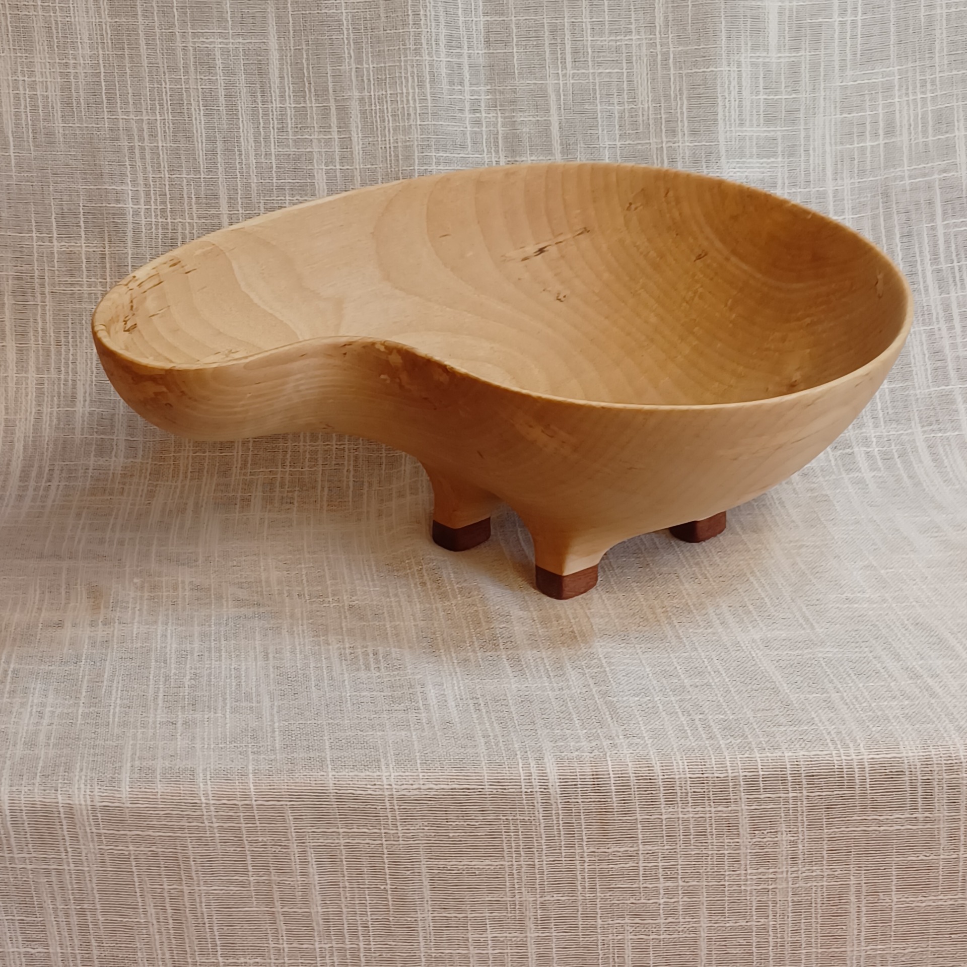 Fatet er laget av bjørk og egner seg godt til frukt og annet snacks. De er bearbeidet for hånd. Uthult, pusset og oljet. Lengde 36 cm, høyde 15 cm og bredde 25 cm.