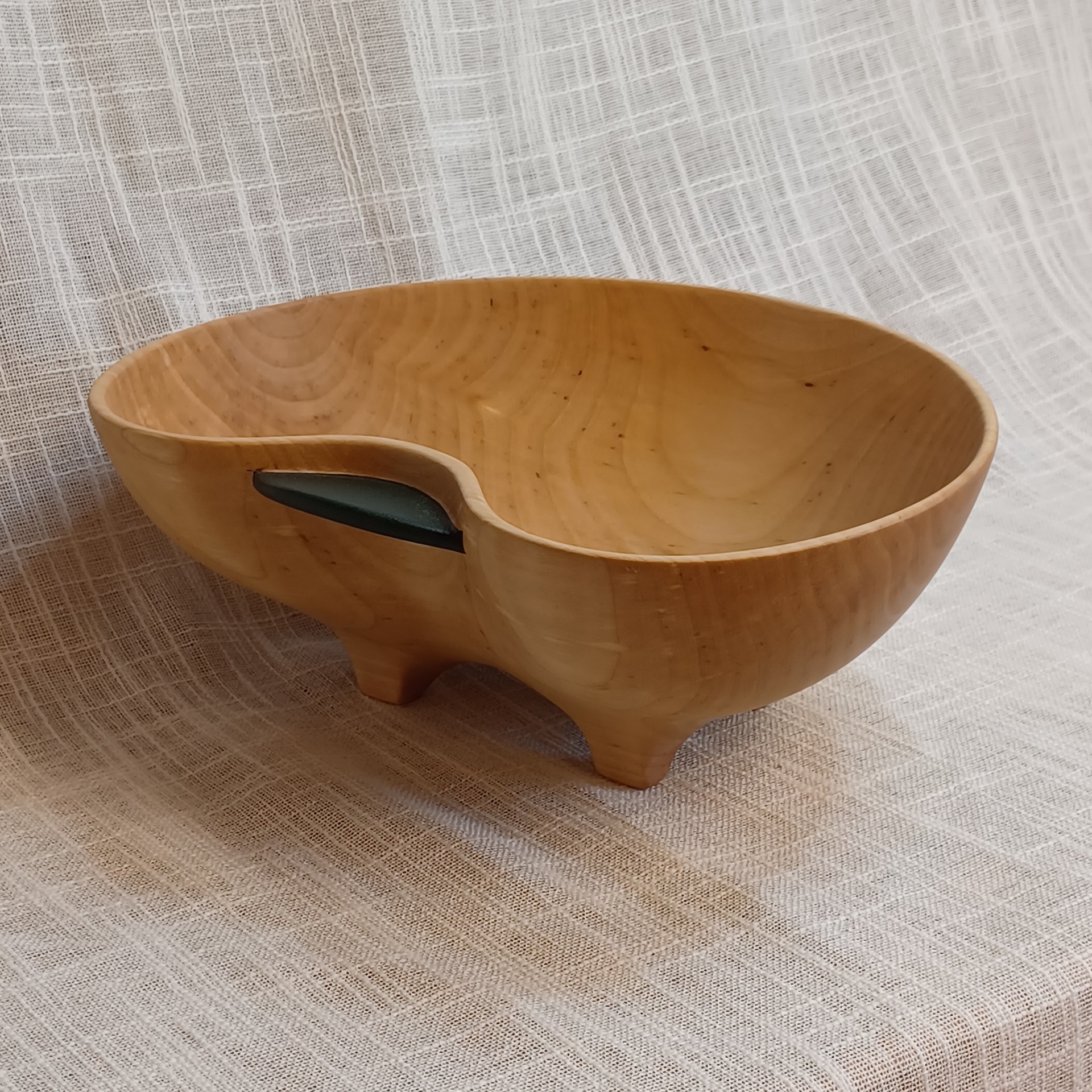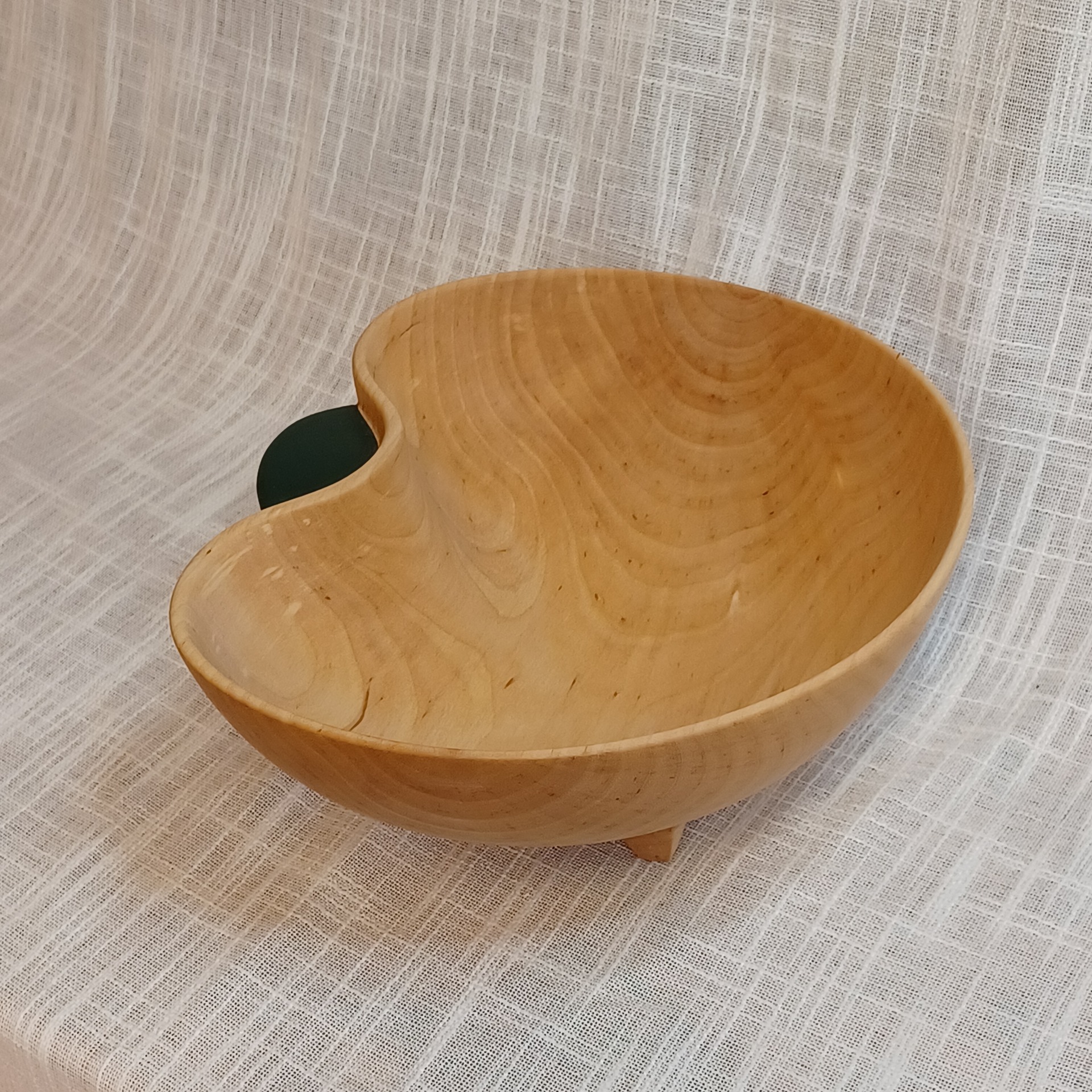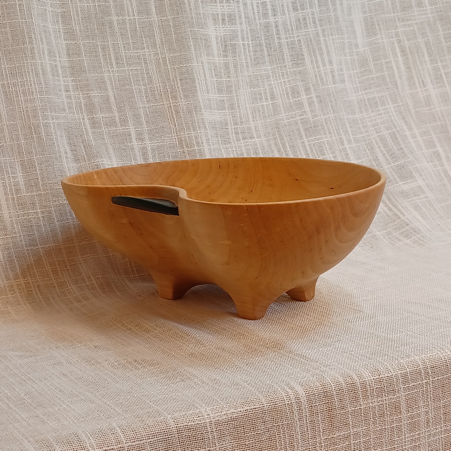 Fatet er laget av bjørk og egner seg godt til frukt og annet snacks. De er bearbeidet for hånd. Uthult, pusset og oljet. Lengde 25 cm, høyde 10 cm og bredde 21 cm.