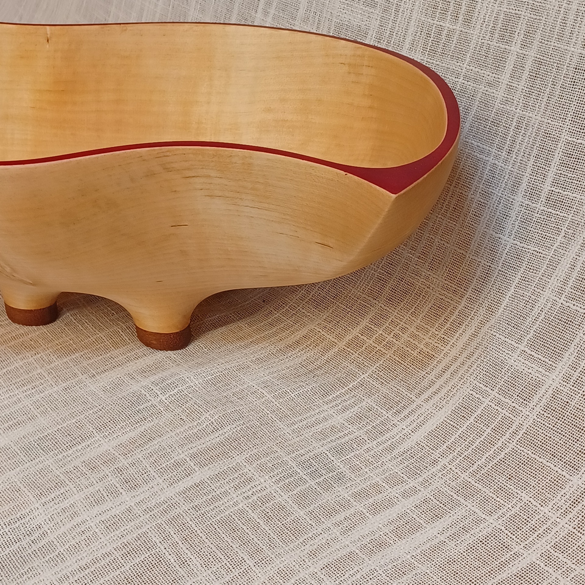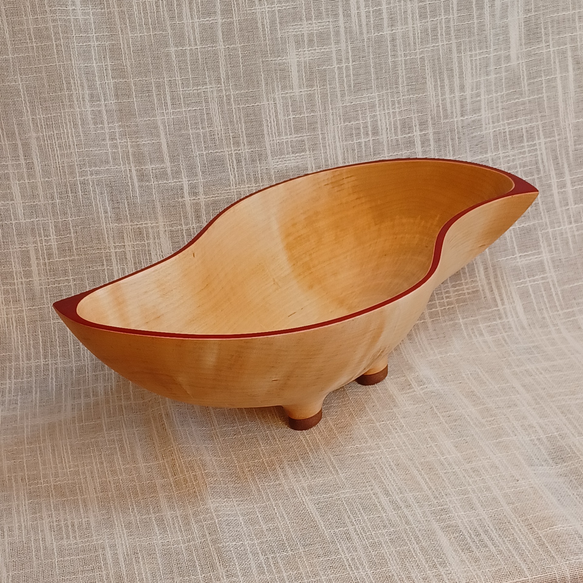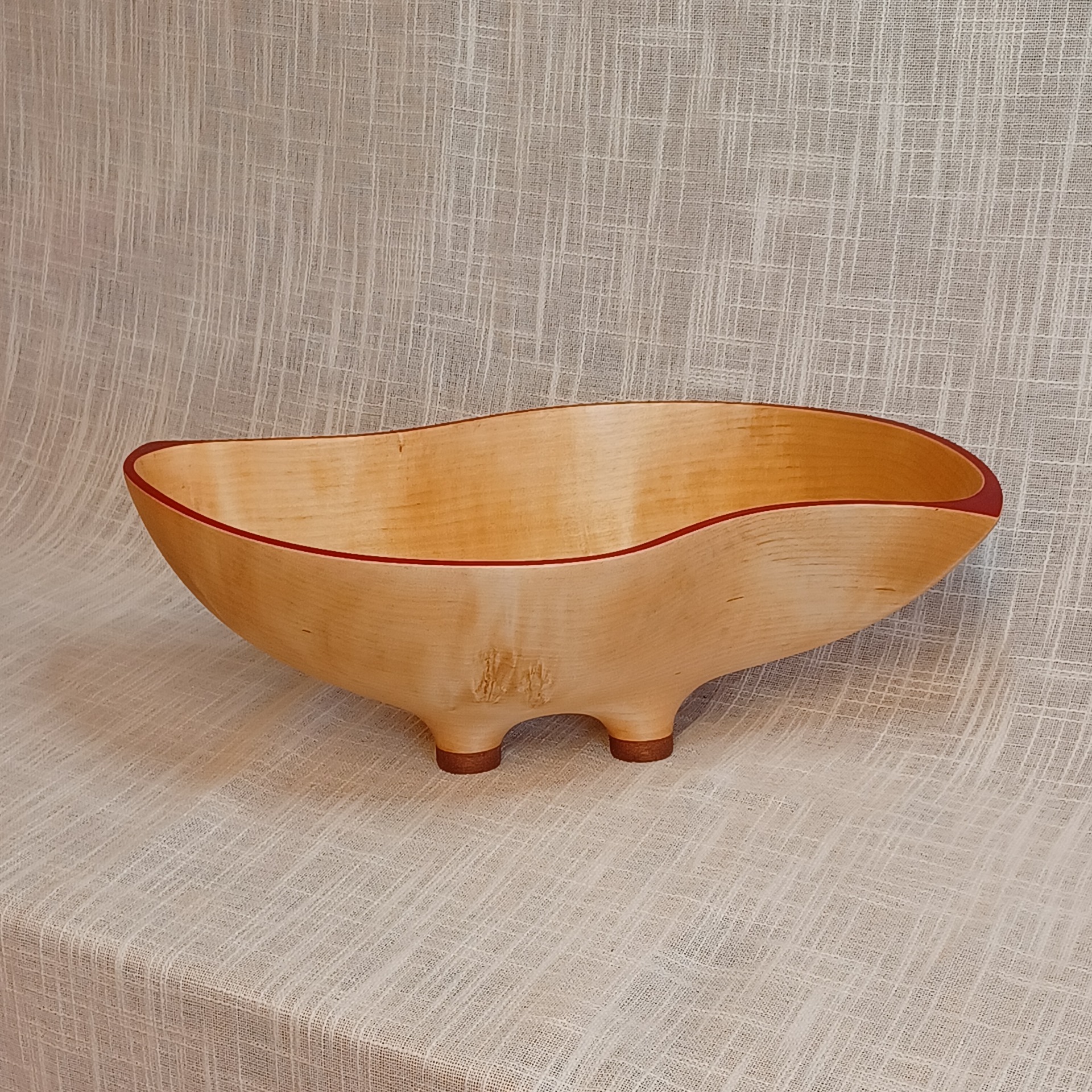 Fatet er laget av bjørk og egner seg godt til frukt og annet snacks. De er bearbeidet for hånd. Uthult, pusset og oljet. Lengde 39 cm, høyde 13 cm og bredde 20 cm.