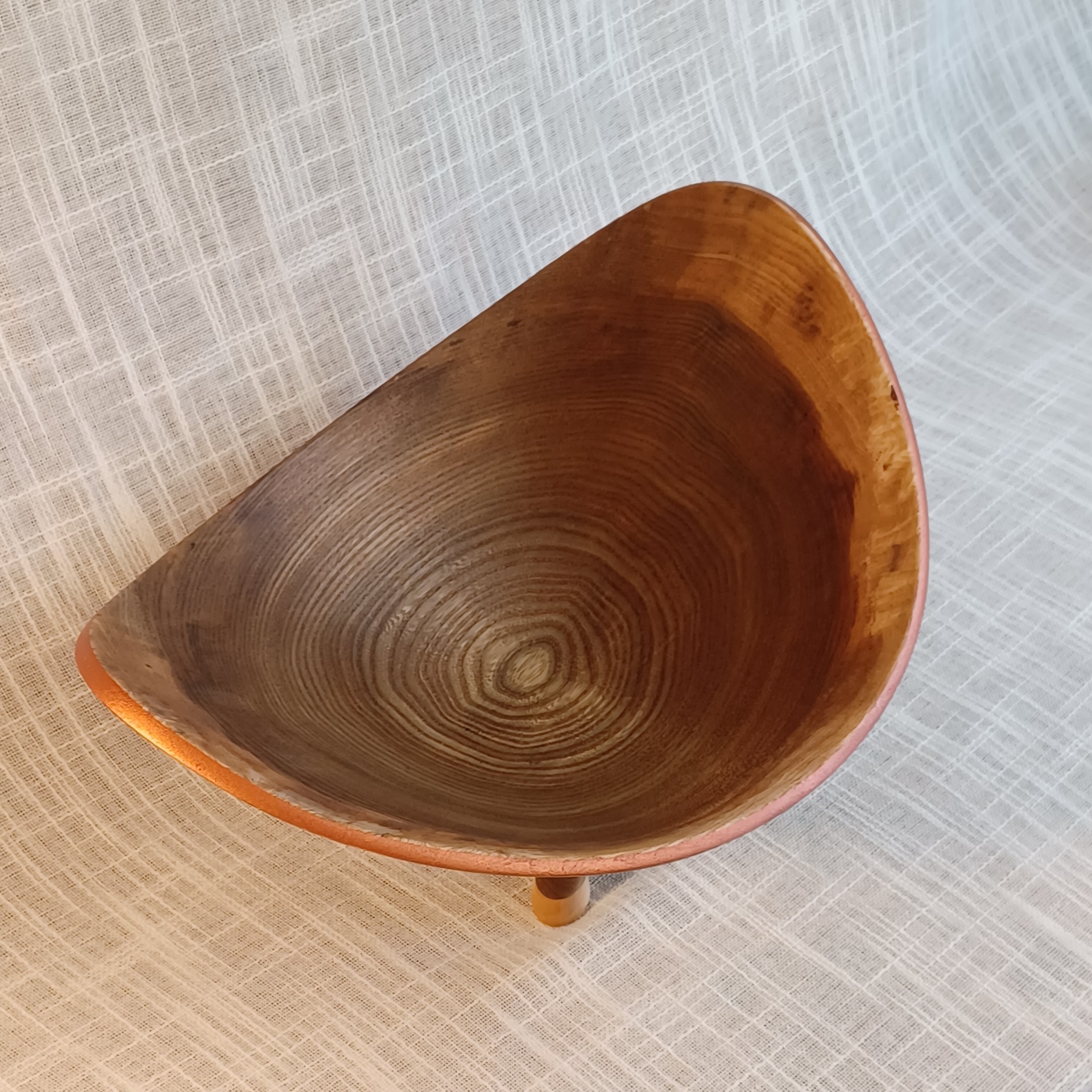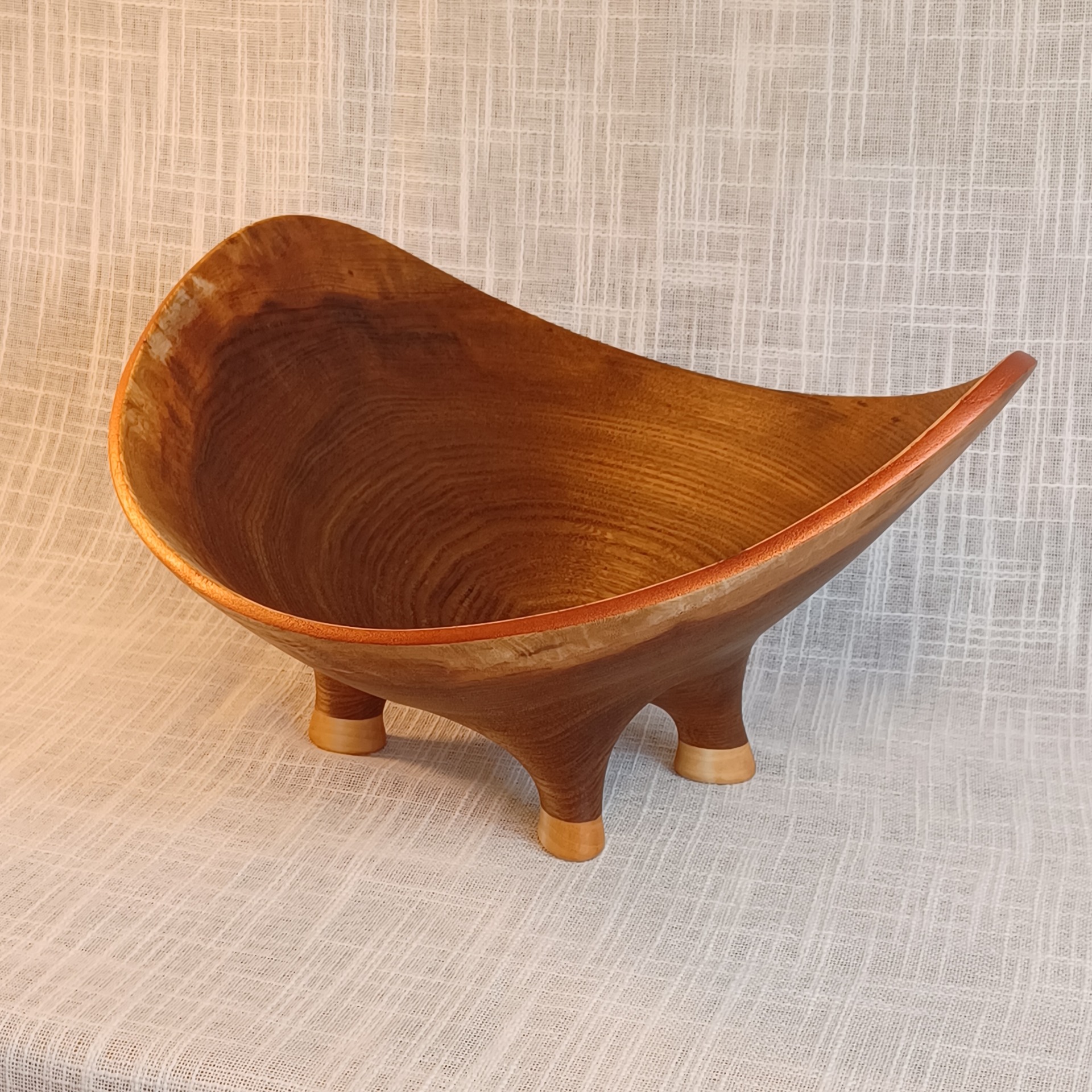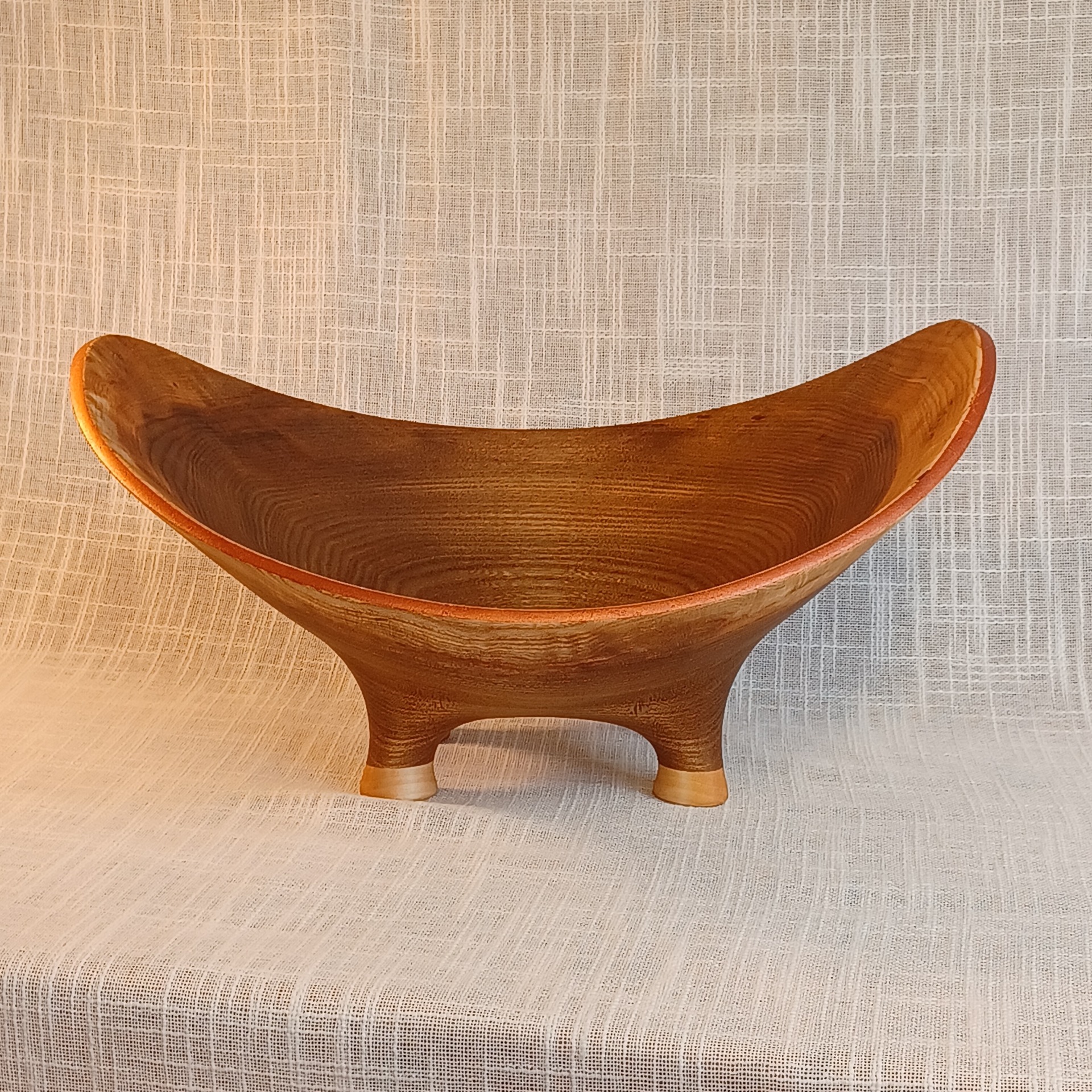 Fatet er laget av alm og egner seg godt til frukt, kaker og brød. Det er bearbeidet for hånd. Uthult, pusset og oljet. Lengde 34 cm, høyde 15 cm og bredde 23 cm.